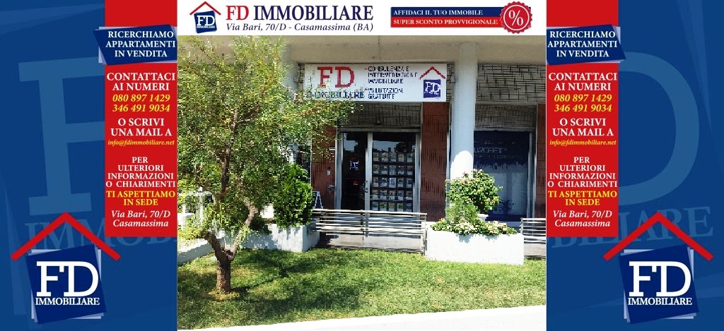 FD Agenzia Immobiliare, nasce nel 2011 a Casamassima, per volontà del titolare Leonardo Frappampina, agente in mediazione, con esperienza ventennale nel settore e ben radicato nel territorio di competenza. Il team di cui l'agenzia dispone è altamente qualificato e garantisce una efficiente gestione delle numerose proposte immobiliari e delle altrettanti richieste, offrendo alla propria clientela una assistenza totale fino al rogito. L'agenzia FD Immobiliare inoltre è fortemente presente sul web sui principali portali immobiliari, in modo da poter offrire ai suoi cliente un'alta visibilità degli immobili in vendita, in modo da facilitare la ricerca a coloro che cercano casa.